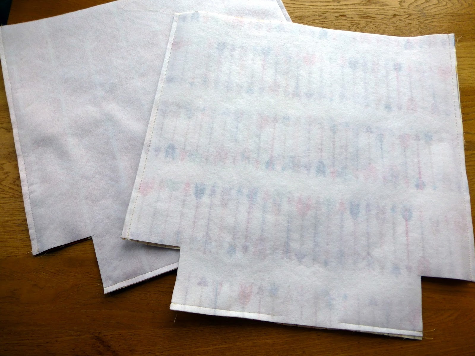 1. From outer fabric (2), lining fabric (2) and vilene (4) cut 18" x 18".