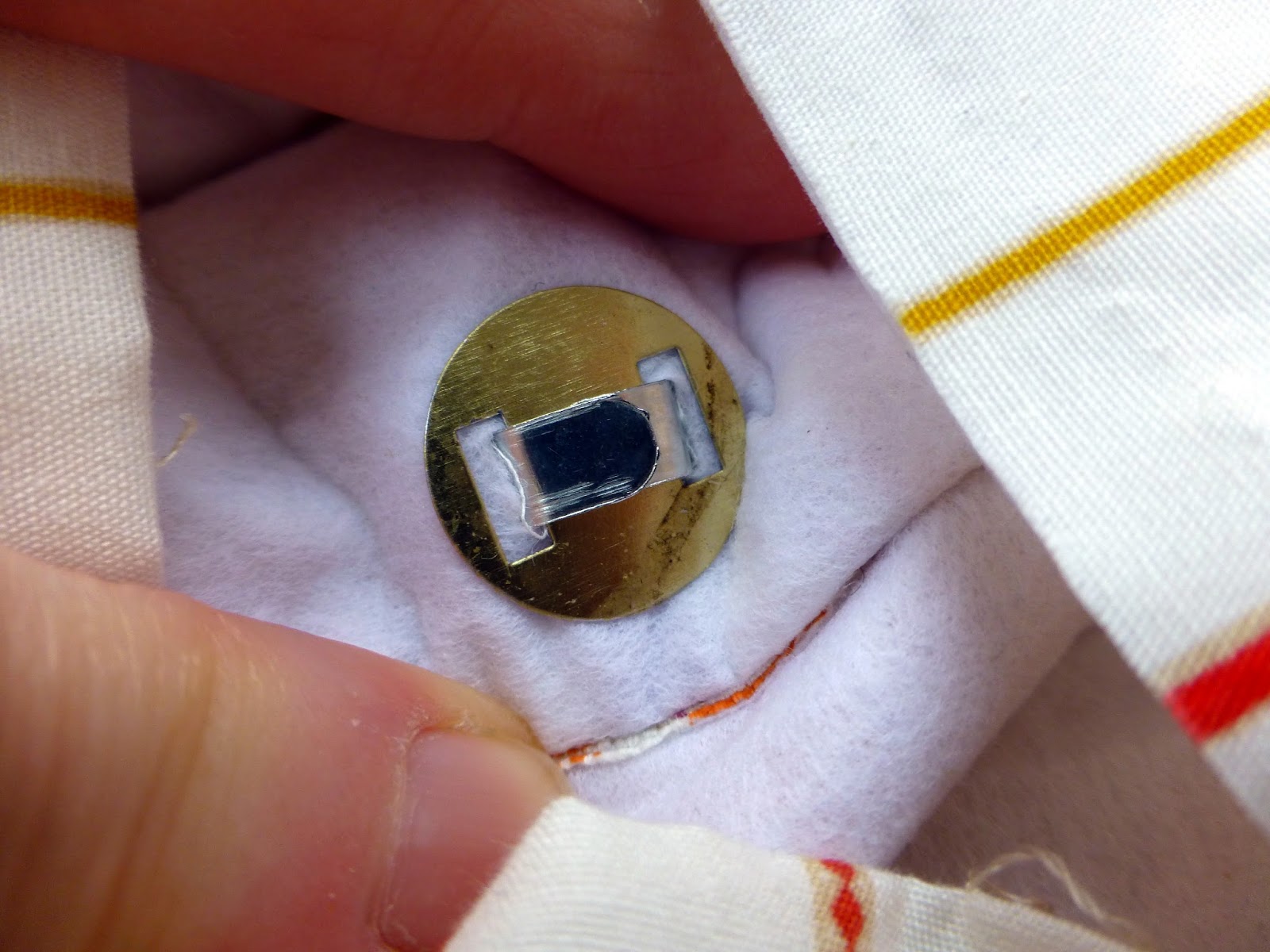 11. Insert 'legs' of clasp through nicks and place washer over the legs at the back (you will need to access the gap in the lining for this).