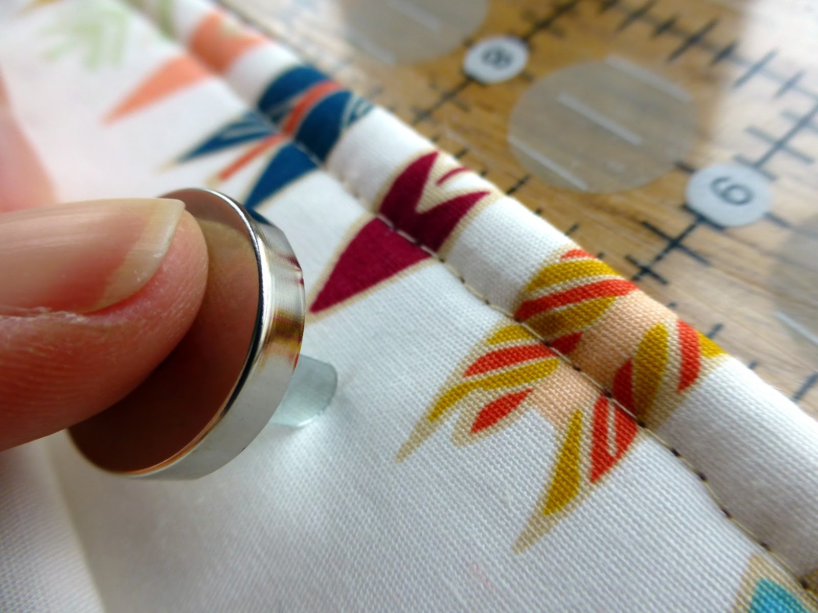 9. Insert magnetic clasp: Find the centre of the top edge and come down 1". Press the 'legs' of the clasp onto the fabric to create indentations.