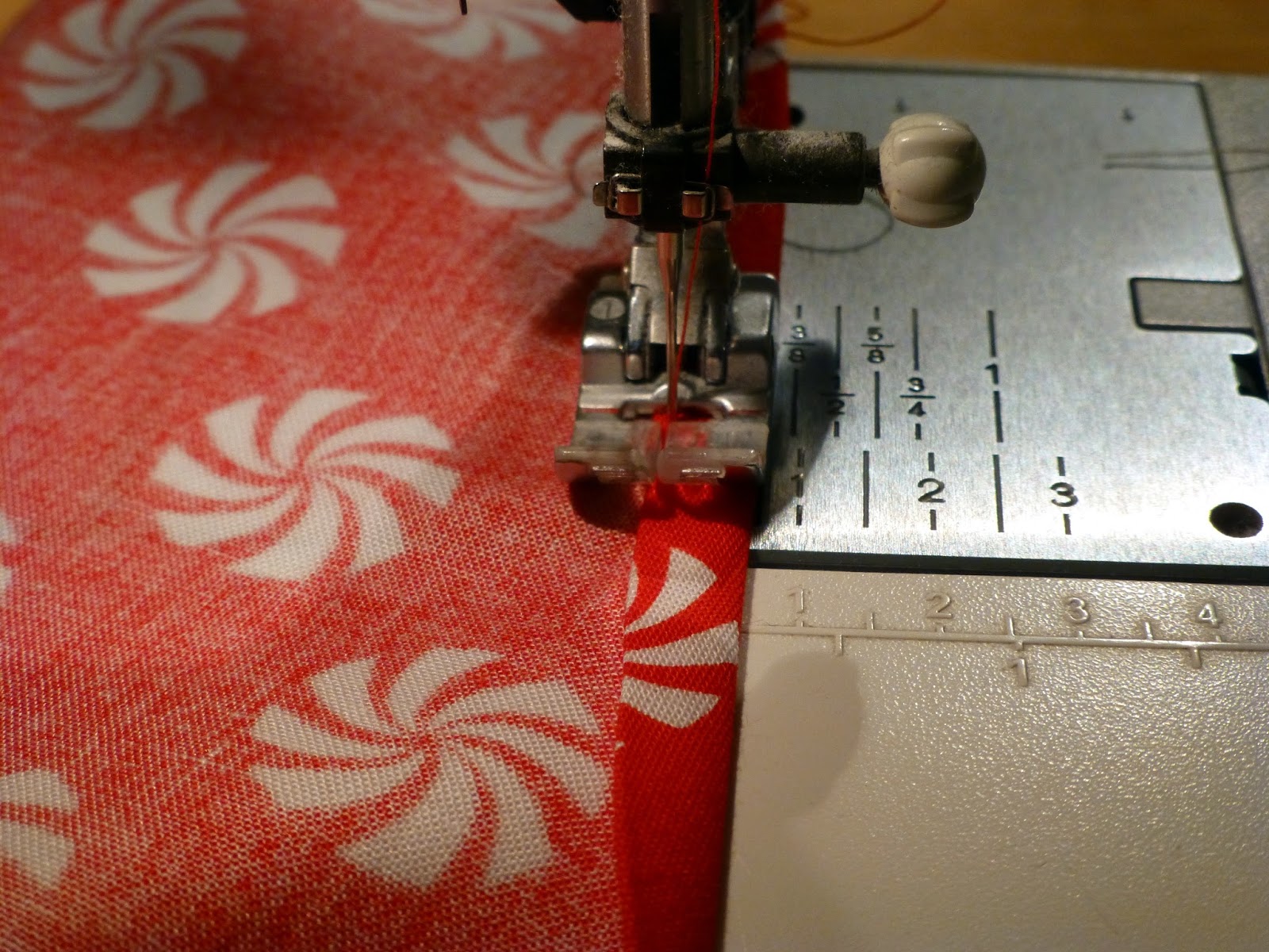 7. Iron the top edge of the apron down ¼”, again towards the wrong side, and over another ¼”. Pin and sew.