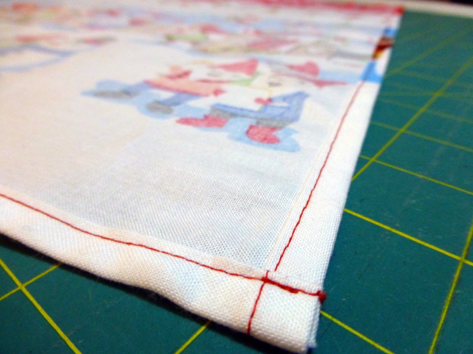 8. Repeat step 7 for the sides of the apron, and finally the bottom edge. All the raw edges of your apron should now be sewn under.