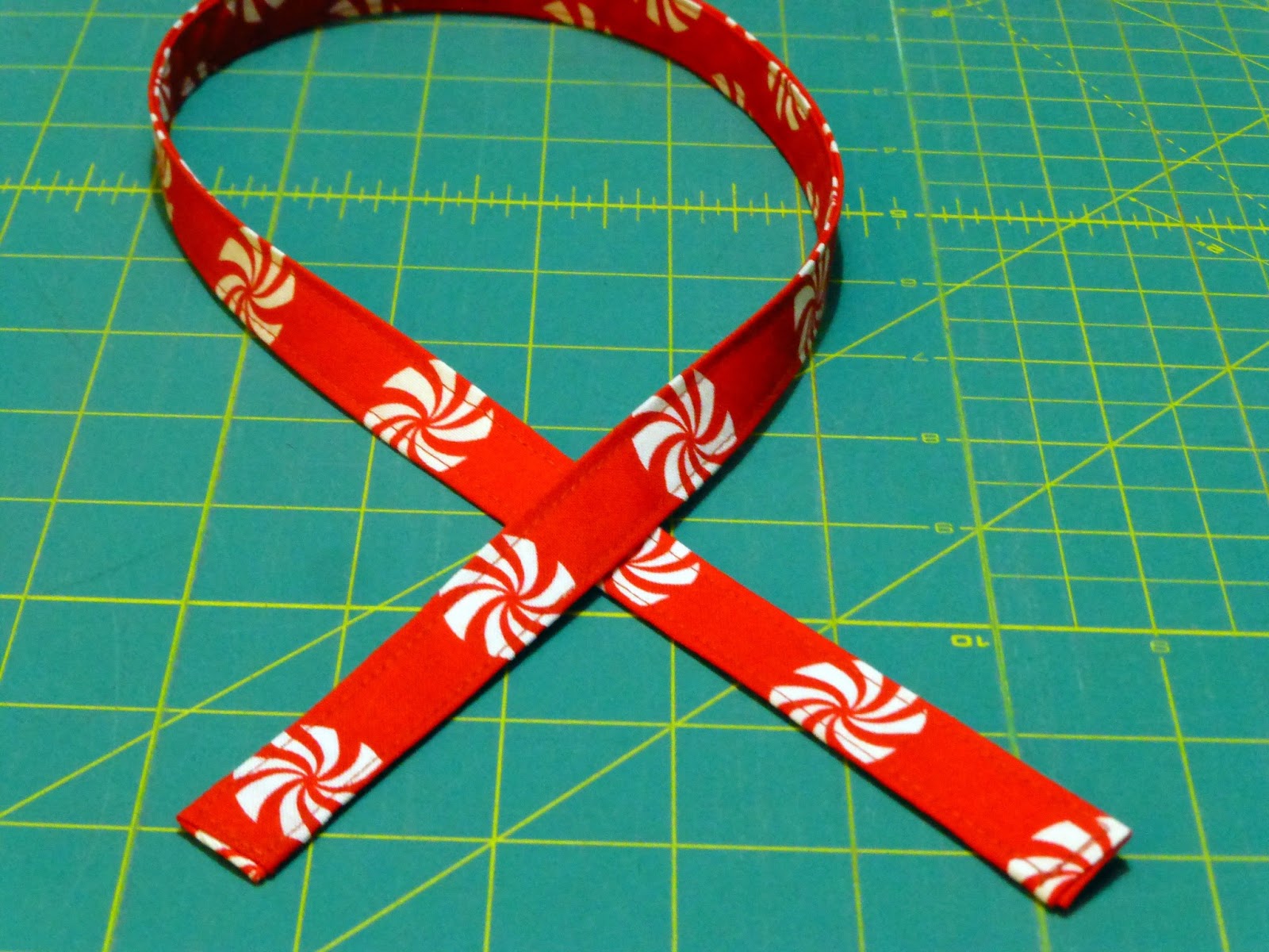 - Make the adjustable neck strap: Cut out a strip of fabric that is 2.5” x 28”. Iron over the short ends ¼” first, and then iron the strip in half lengthways, wrong sides together. Open out and press long edges up to centre crease. Finally fold the strap in half again and press.