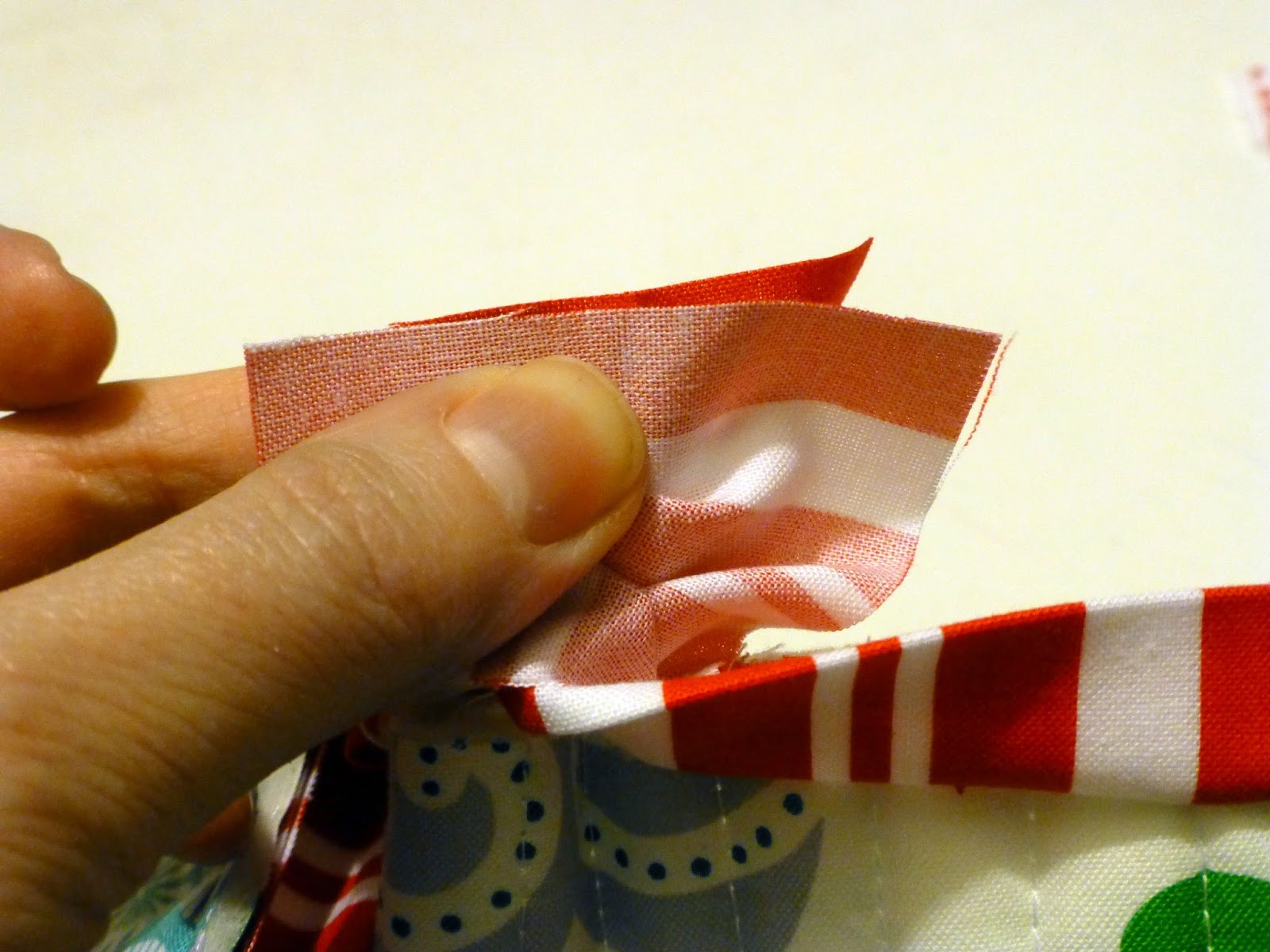 14. Press the binding out and flip it over to the back side. Either hand or machine the binding down.