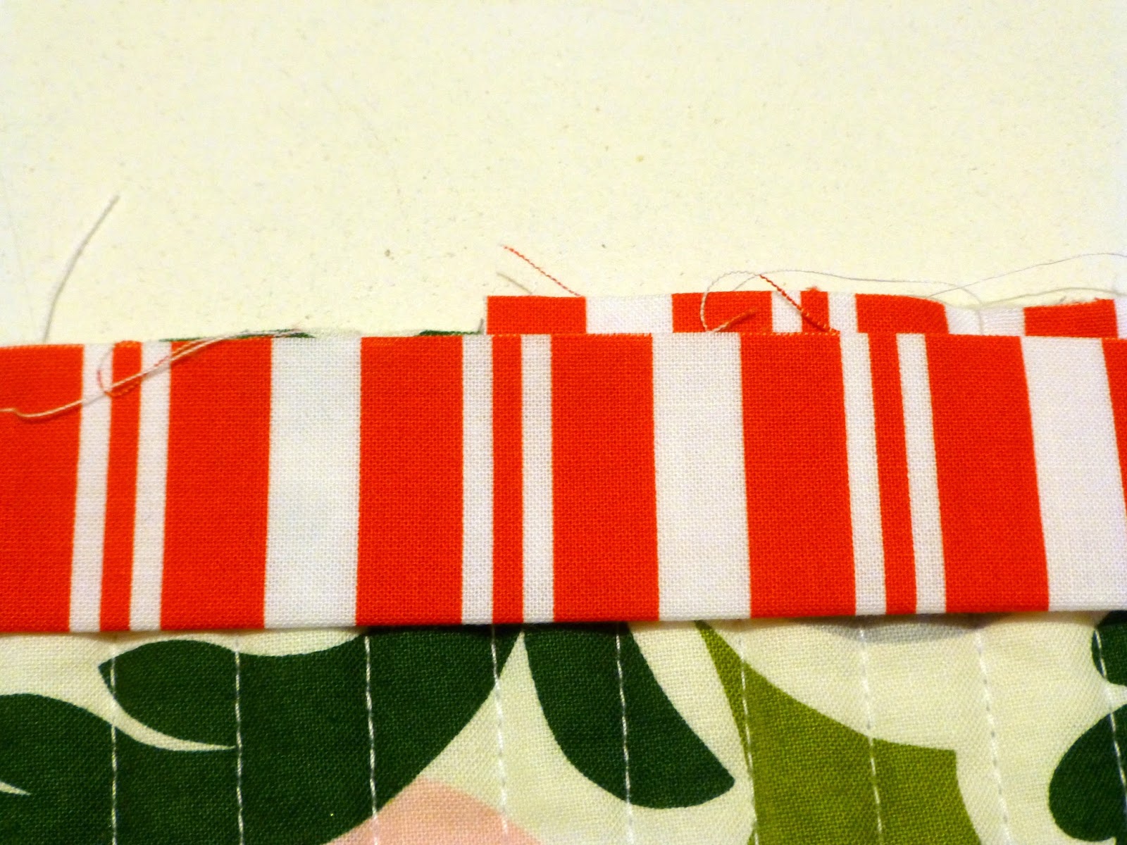11. Overlap the 2 ends of the binding and measure 0.5". Cut off the excess at this marker.