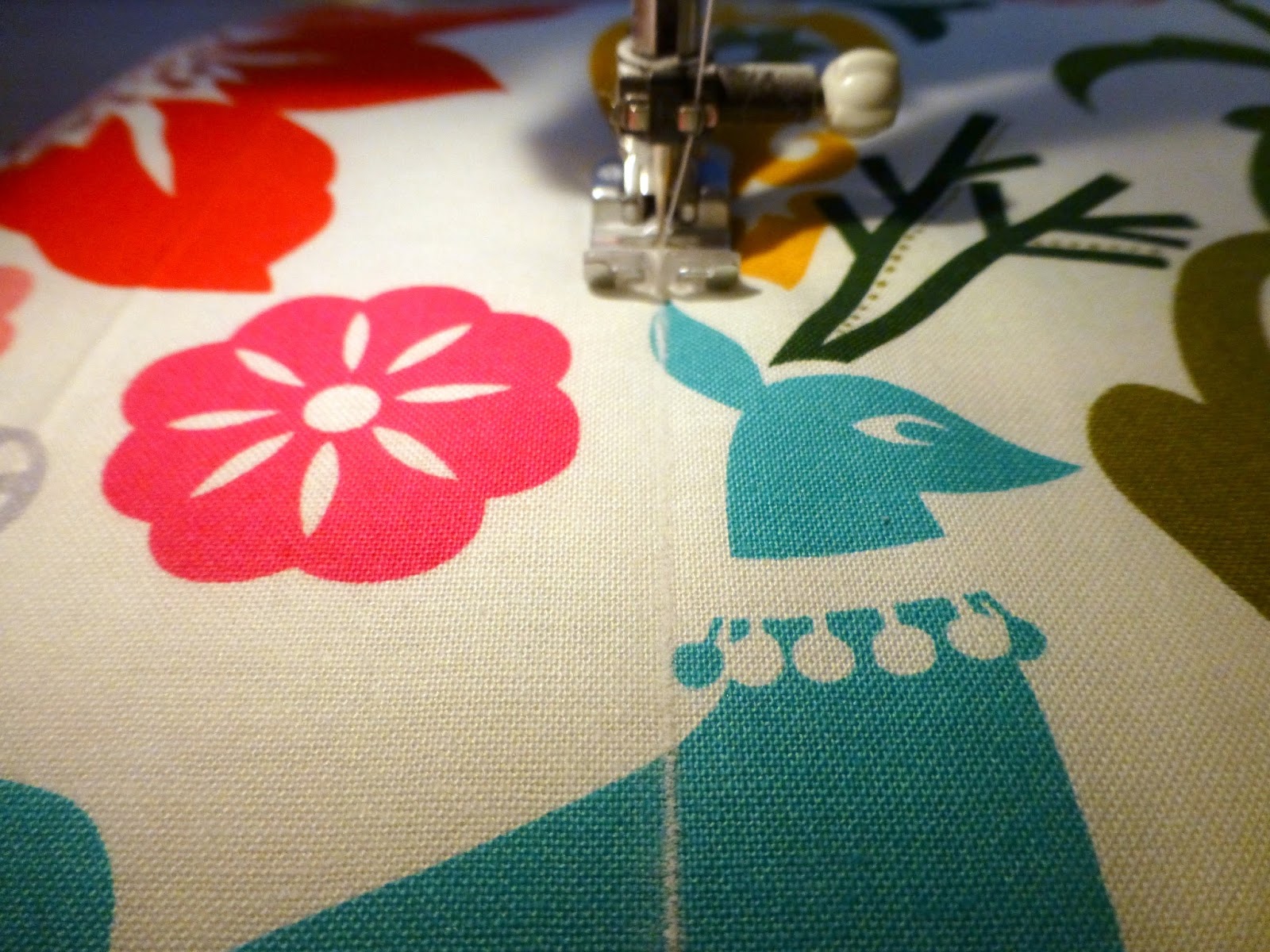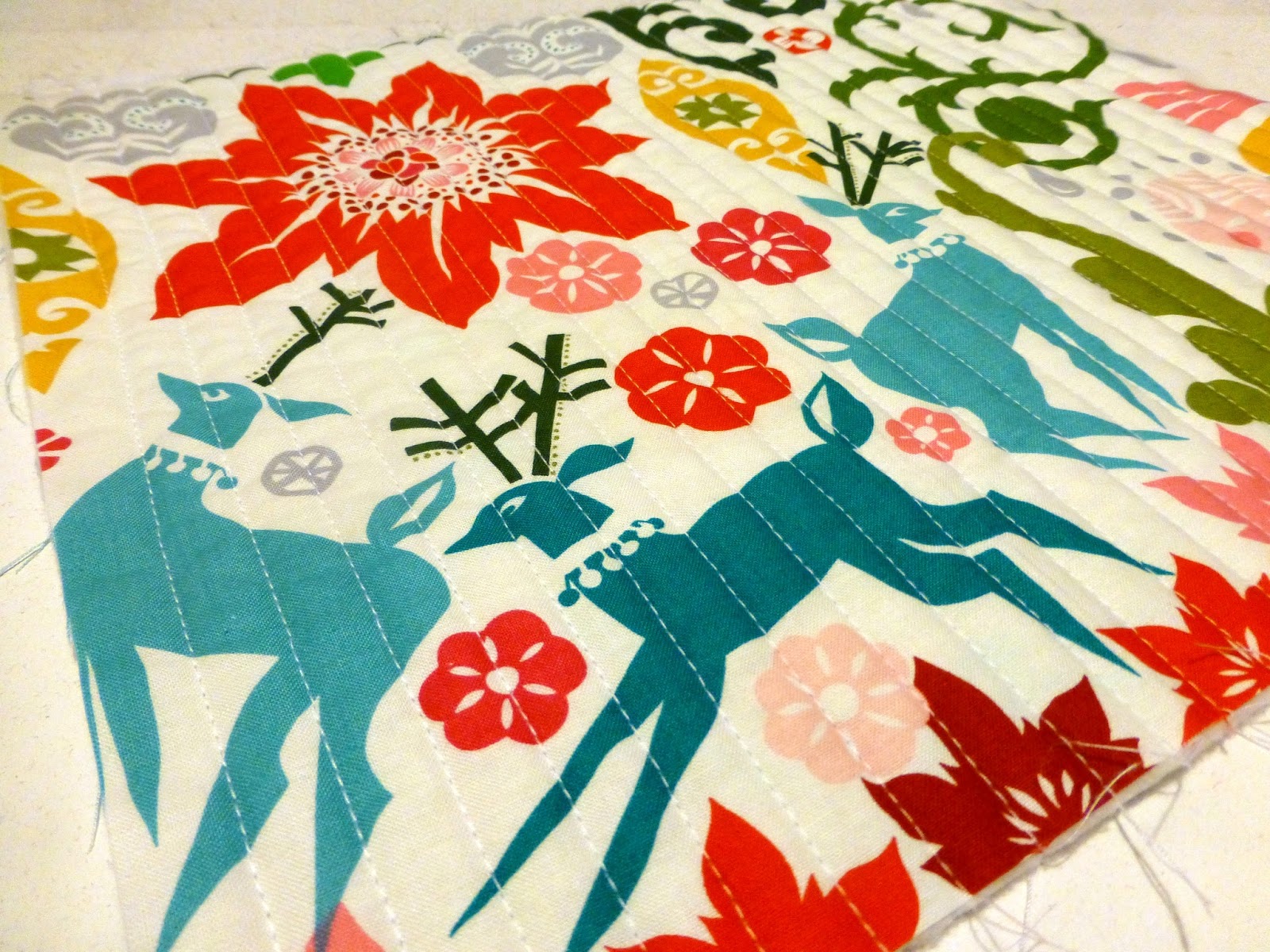 1. Cut 4 x (13" wide by 15.5" tall) each from front and back fabrics and the wadding.
