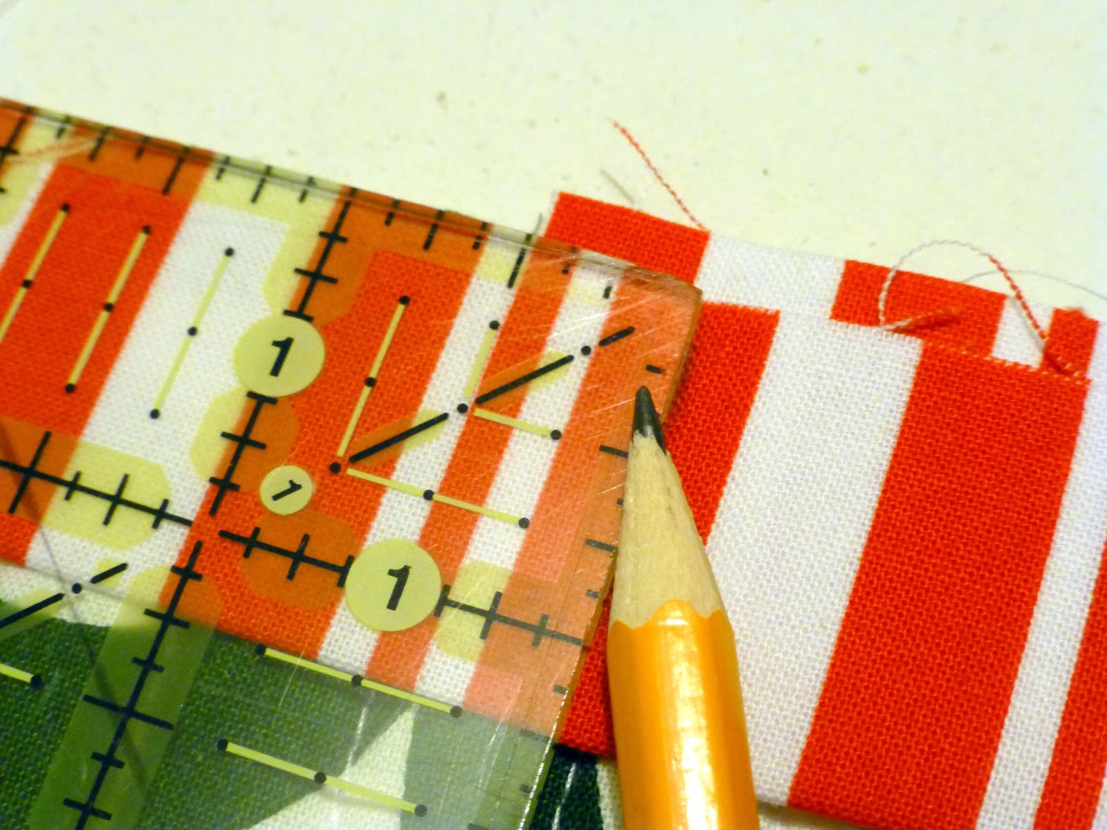 12. Open out the strips and sew right sides together using 1/4" seam allowance. Finger press the seam open.
