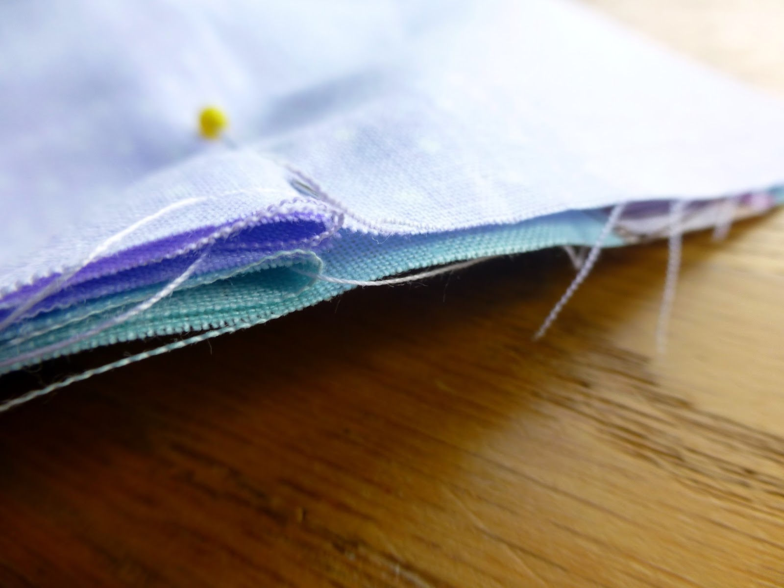 6. Sew from side pin to side pin, closing the open top edge. Use a reverse stitch to start and finish.