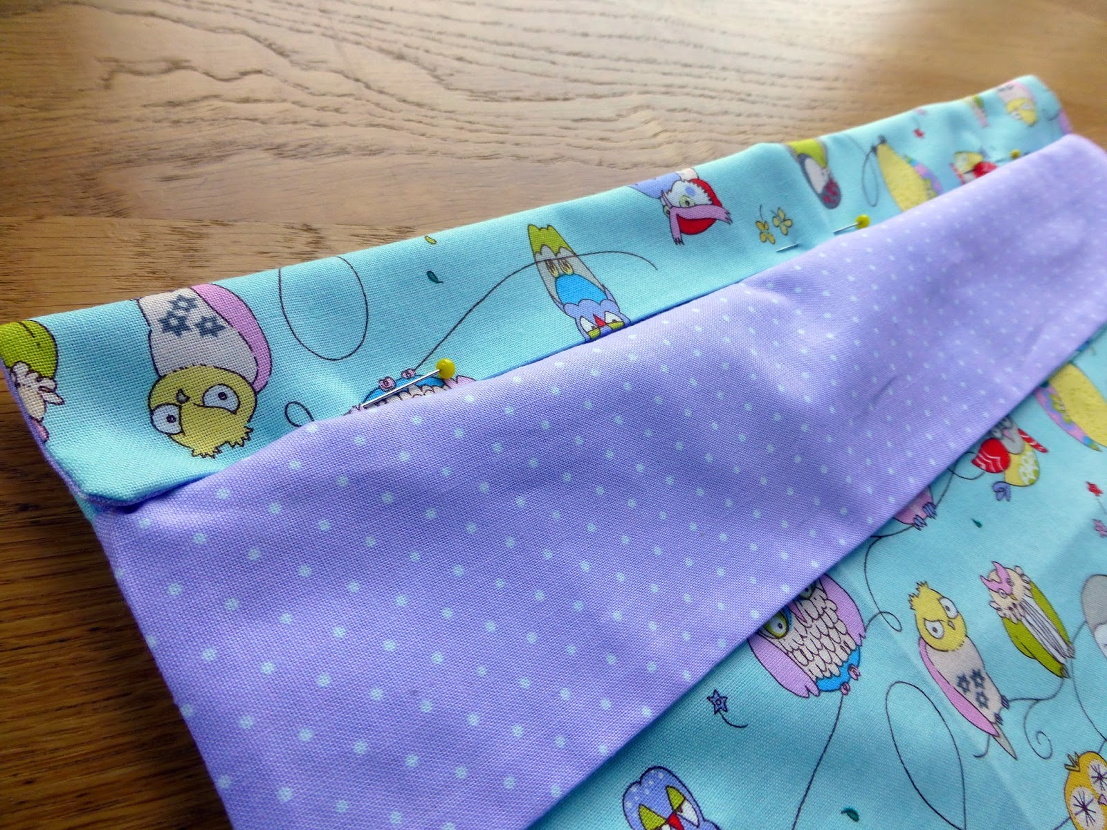 0.5m fabric - outer (2 pieces cut 16" wide by 17" tall) Spotted Owls Blue or Color Me fabric used here